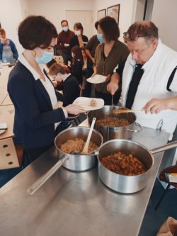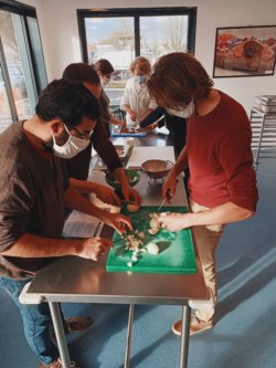 C'est dans la nouvelle cuisine scolaire municipale que nos "7 familles" du Défi se sont retrouvées pour l'atelier cuisine "légumes et légumineuses". Animée par Claire Vaugeois du Défi Santé Nutrition de Brest, la matinée a été consacrée au travail de produits bio bruts et frais de saison et la confection de recettes de sa ison : sarrasoto aux poireaux, dal de lentilles cèleri et butternut...