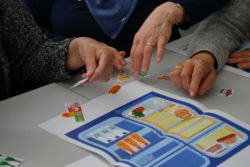 Par exemple, comment limiter le gaspillage alimentaire à la maison ? Les participantes ont répondu à un petit quiz interactif sur les DLC (Date limite de consommation ou “A consommer jusqu’au”) et DDM (Date de durabilité minimale ou “A consommer de préférence avant le”) de quelques produits bien connus. Quelques recommandations étaient au goût du jour pour éviter de gaspiller. Par exemple lors des achats, il est recommandé d’acheter des quantités que l’on est sûrs de consommer. Avec un jeu sur le rangement du frigo (voir les photos) selon les zones, les participantes ont compris qu'elles pouvaient surveiller les dates de péremption des denrées. Et puis en cuisine, on n’hésite pas à cuisiner les restes ou fruits et légumes « moches » pour leur donner une nouvelle vie!