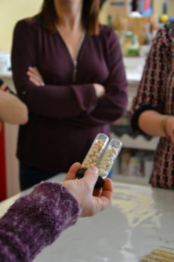 Le cœur du sujet parle bien entendu des emballages… Mais quels emballages ? Qu’est ce que le vrac ? Pourquoi le vrac ? Lors de l’atelier, nous invitions les participantes à comparer les prix au kg de salades et autres crudités en vrac et emballées (prêtes à manger). Sans surprise, elles ont réalisé que ces dernières sont bien plus chères ! Et elles ont le sérieux désavantage de produire du plastique à usage unique, grand pollueur des temps « modernes ». Ajouté à cela, quelques bons réflexes à adopter comme réutiliser les emballages pour les courses (sacs en papier, sacs cabas réutilisables et échangeables à vie) voir investir dans des sacs en tissu !