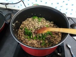 - pilaf de lentilles et semoule à la cannelle, coriandre et cumin (association légumineuse et céréale pour l'apport protéique et l'équilibre alimentaire)