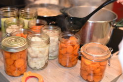Pour mener à bien l'atelier conserve, Marie qui l'anime a fait le plein de provisions : panais, potiron, carottes, poireaux, oignons, céleris, chou-fleur, pois cassés.. Avant de commencer, un point sur l'importance de l'hygiène. Pendant toute la préparation les légumes sont lavés et relavés, pour éviter toute contamination des conserves. Ces précautions sont importantes pour éviter que des bactéries potentiellement dangereuses se développent dans les aliments.
