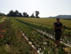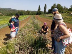 Béatrice nous a tout d'abord fait une présentation de l'exploitation : historique de la ferme, surface, climat, organisation sur l'année, circuits de commercialisation...  Nous avons ensuite fait le tour des différents espaces de plantation : les surfaces de légumes en plein champ, zones de plantes aromatiques, zones avec plantes comestibles...