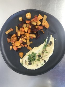 Au menu : légumes rôtis, houmous, chili, pizza betterave-chèvre et crumble de légumes de saison.
