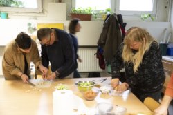 Pour relever ces différentes préparations, les participants ont découvert plusieurs astuces : utilisation d'épices dans la vinaigrette, infusion d'épices dans une huile tiède pour parfumer les légumes cuits, création d'un condiment type gomasi