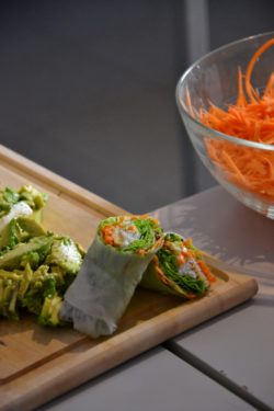 En passant en cuisine, la première équipe a réalisé des rouleaux de printemps équilibrés avec des ingrédients un peu originaux pour changer du quotidien. Chaque participante pouvait confectionner sa préparation en fonction de ses goûts :