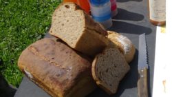 Après les visites, chaque équipe a dégusté les produits offerts par les paysan-ne-s des fermes visitées et par d’autres producteurs de Connexion Paysanne : poulets rôtis, rillettes de poulet, miel, brioche, pains, cidre, jus de pomme, nectar de fruits rouges … Humm...