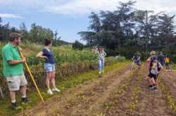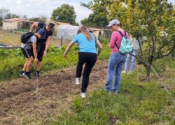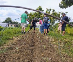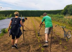 Pour nous immerger dans le quotidien d’un.e maraîcher.e en Agriculture Biologique, Franck nous a montré les outils de désherbage qu'il utilise, tels que la houe maraîchère, la ratissoire, ainsi que des modèles auto-construits. Nous nous y sommes même essayé.e.s !