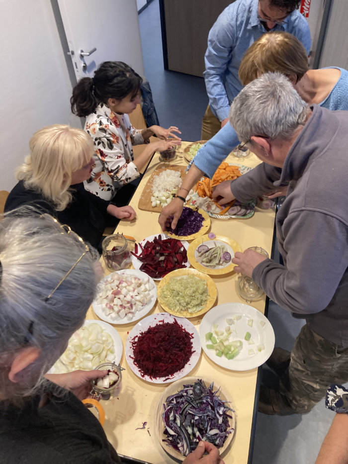 Le 18 avril dernier, l'équipe des Pomm'Noisettes se rassemblait au CIAS de Lavelanet pour participer à l'atelier sur les légumes lactofermentés orchestré par Christiane.